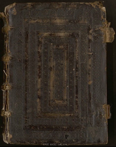 Las 2 obras se conservan en buen estado, protegidas por una elegante encuadernación mozárabe, con nervios y hierros característicos, restos de cierres metálicos y título decorado con filigrana y color en el canto.
