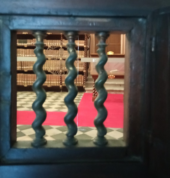 La biblioteca Histórica de la Universidad de Valladolid se reformó a principio del Siglo XVIII. De su fundación, gótico-renacentista, conserva las puertas originales, de alrededor de 1490, atribuidas al retablista y escultor Alejo de Vahía. Cada una de las hojas, en su parte interior, que se expone en un cuidado efecto al abrirse, es un pequeño retablo.